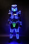 Vêtu d'un costume sur mesure intégrant des lumières LED programmables, l'artiste propose des chorégraphies affichant couleurs, motifs et même le nom de votre entreprise. Idéal pour les salles obscures et comme animation phare lors d'événements d'entreprise, de soirées et de lancements de produits. Les LED sont programmables individuellement.